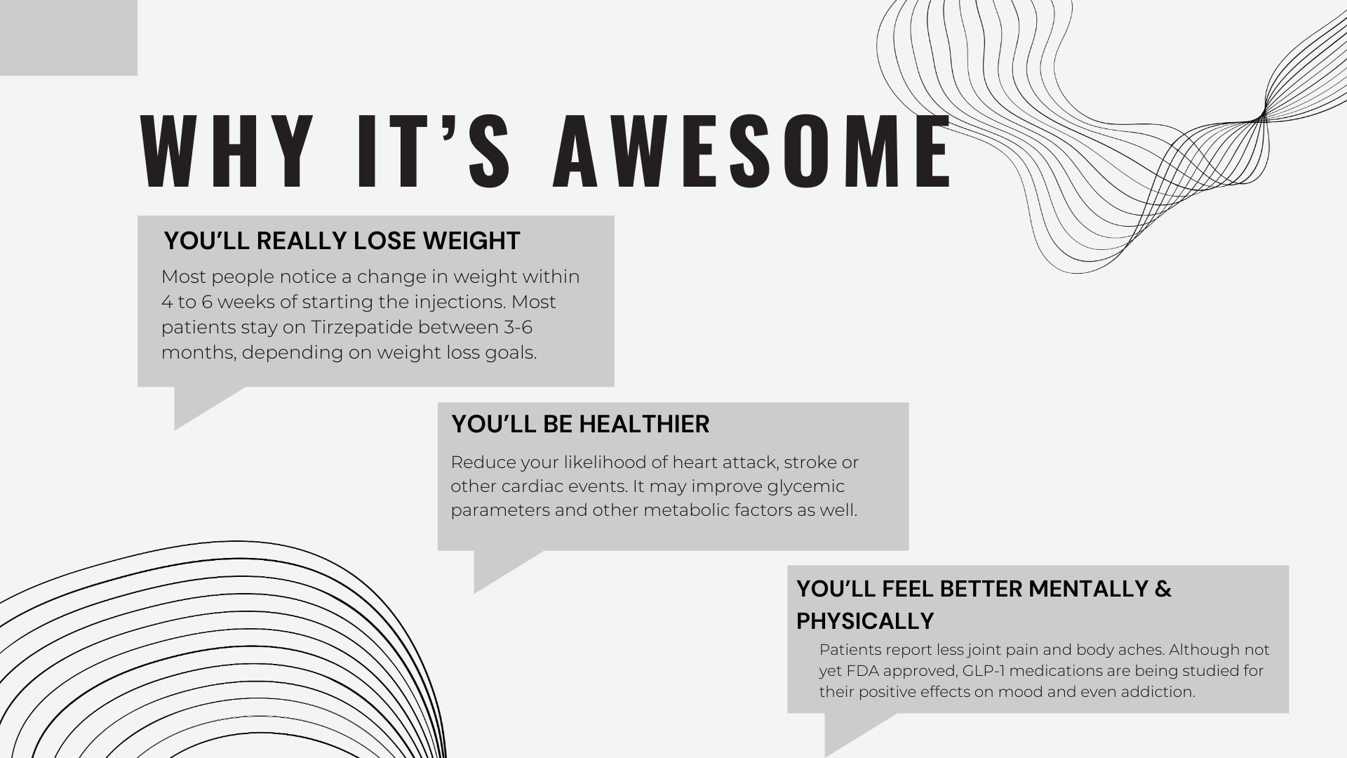 Achieve a healthier, more confident version of yourself with compounded tirzepatide. Book an appointment today to learn more about this innovative weight loss treatment!